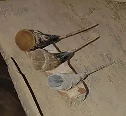 - ↑ Ulrich Schießl: Malhorn, Model und Patrone. Technologische Untersuchungen an Malereien auf altbayerischen Möbeln des 17. und 18. Jahrhunderts aus den Beständen des Bayerischen Nationalmuseums. Maltechnik, Restauro 87, 1981, 155–183.