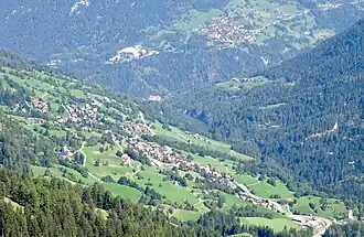 ![]() Rechts im Hintergrund Maladers, rechts unten der Turm der Ruine der Burg Strassberg