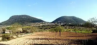 Zwei Gebirgszüge rahmen die Insel ein, die weniger spektakulären Serres de Llevant im Osten und die bekannte, über weite Strecken nicht besiedelte Serra de Tramuntana im Nordwesten, in der die höchsten Berge der Insel, darunter elf mit über 1000 Meter über Meereshöhe, liegen. In den Serres de Llevant befinden sich hingegen nur drei Gipfel über 500 Meter. Diese Höhe erreicht außerhalb der beiden Gebirgsketten nur der Puig de Randa mit 540 Meter im Es Plà in der Mitte der Insel.