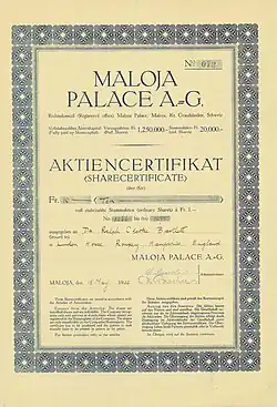 - ↑ Die Quellen widersprechen sich: auf der offiziellen Website des Hotels Maloja Palace ist von 250 Zimmern die Rede.