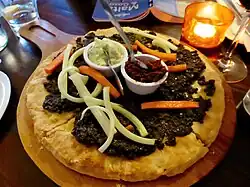 - Ħobż biż-żejt (auch Ftira)[A 1]: Ein rundes Sauerteigbrot, das mit unterschiedlichen Kombinationen von Thunfisch, Zwiebeln, Knoblauch, Oliven, Kapern, Tomaten, Minze oder Sardellen belegt und mit Olivenöl beträufelt wird.