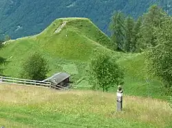 - Oberhalb vom Ortsteil Chiesa, im Siedlungsausläufer Tagnugna, liegen die Reste einer Casa dei Pagani[25]