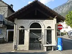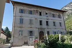 - Die Casa Canzali in der Fraktion Rongie mit Reichsadler und Viscontiswappen auf der Fassade[23]