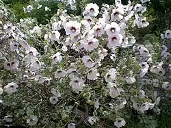 - Baumförmige Strauchpappel (Malva arborea (L.) Webb & Berthel.; Syn.: Lavatera arborea L., Malva eriocalyx (Steudel) Molero & J.M.Monts., Malva dendromorpha M.F.Ray)[11]