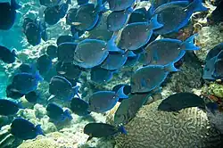 Im Bereich der Korallenriffe des Parks fand eine Studie in den Jahren 2000 und 2001 neben 24 unterschiedlichen Arten von Korallen auch 153 Fischarten, die die von den Korallen gebildeten Strukturen als Lebensraum nutzen. Die am häufigsten vorkommenden Korallen sind die zu den Feuerkorallen gehörenden Arten Millepora alcicornis und Millepora squarrosa sowie die zu den Steinkorallen zählende Montastraea annularis. Des Weiteren finden sich diverse Arten von Weichkorallen, Schwämmen und Gorgonien in großer Zahl. Die fünf am häufigsten nachweisbaren Fischarten sind der Blaue Doktorfisch, der Blaukopf-Junker, die Riffbarsch-Art Abudefduf saxatilis, die Meerbarbe Pseudupeneus maculatus sowie der Ozean-Doktorfisch. Eine besondere Touristenattraktion stellen Riffhaie dar, die bei den Tauchspots der Man of War Shoal regelmäßig anzutreffen sind. Gelegentlich können hier auch Manta-, Stachel- und Gefleckte Adlerrochen beobachtet werden. Besonders zahlreich sind auch die Wirbellosen, die beispielsweise durch die Karibik-Languste, die Flammen-Helmschnecke oder den Genetzten Kissenstern repräsentiert werden.[6]