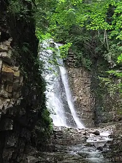 Der Fluss, der hier in mehreren Kaskaden etwa 20 Meter in die Tiefe fällt und somit einen der höchsten Wasserfälle der ukrainischen Karpaten bildet, ist an dieser Stelle ein hydrologisches Naturdenkmal von nationaler Bedeutung.[3][4][Anmerkung 1]