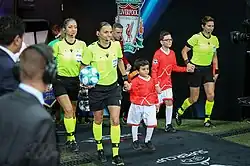 Am 14. August 2019 leitete mit Stéphanie Frappart, Manuela Nicolosi und Michelle O’Neill erstmals ein weibliches Schiedsrichtergespann das Finale des UEFA Super Cups 2019 zwischen dem FC Liverpool und dem FC Chelsea (2:2 n. V., 5:4 i. E.).[3]
