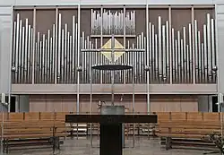 II/P 15 das Gehäuse der Vorgängerorgel von Walcker wurde in den Neubau integriert → Orgel