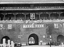 1976, im Todesjahr Maos, hing für kurze Zeit ein Schwarzweiß-Foto der Xinhua News Agency über dem Tor.[9]