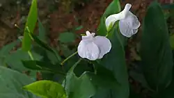 Die gestielten, kleinen, weißen und dreizähligen Blüten mit doppelter Blütenhülle sind zwittrig. Der Kelch mit drei schmalen eilanzettlichen Blättern ist bis 1,7 Zentimeter lang. Die lange, unten bauchige Kronröhre ist oft verdreht mit drei Lappen am Ende. Es sind 2–3 petaloide Staminodien im äußeren Kreis vorhanden. Im inneren Kreis sind zwei Staminodien und ein (halbes) Staubblatt ausgebildet. Der unterständige, einkammerige Fruchtknoten mit einer Samenanlage ist manchmal behaart. Es sind Septalnektarien vorhanden. Der Griffel besitzt einen schnauzenförmigen Griffelkopf, in dem die Narbe liegt.