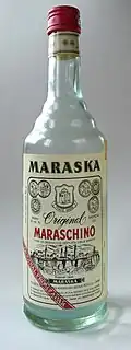 Maraschino (IPA: [], ) ist ein Kirschlikör, der aus Maraska-Kirschen hergestellt wird, einer ursprünglich dalmatinischen, intensiv schmeckenden Sauerkirschsorte. Er ist klar und farblos, hat einen Alkoholgehalt von um die 30 % vol und ein würziges Kirscharoma mit einer deutlich wahrnehmbaren Bittermandelnote. Der Likör wird nicht mit Zusatz von Fruchtsaft hergestellt, sondern erhält sein Kirscharoma aus dem Destillat vergorener oder kalt ausgezogener Maraska-Kirschen.[1] Der Bittermandelgeschmack soll auf die Mitverwendung zerkleinerter Kirschkerne zurückgehen.[2]