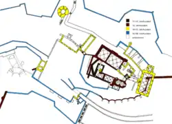 Mit den Baumaßnahmen in der Kernburg stehen die Anlage eines Zwingers und möglicherweise auch der Bau/Ausbau der westlichen Vorburg in Verbindung. Im Süden wurde eine aufwändige Stützmauer aus Bogensegmenten errichtet und das Schloss auf einen Sockel gestellt, der es erhöht und zugleich die monumentale und repräsentative Wirkung der Schlossbauten steigert.
