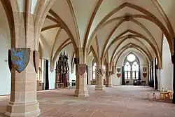 - ↑ Der Saalbau wird mit Überlegungen zu Vorbildern ausführlich besprochen von Großmann 2002.