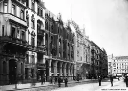 Die in den ersten Jahren nach Anlage der Straße in gründerzeitlicher Manier errichteten Bauten waren für Mieter aus dem gehobenen Bürgertum bestimmt. So wurde 1897 in der Marburger Straße 3 ein architektonisch aufwendiges Mehrfamilienhaus errichtet, mit ursprünglich acht bis zwölf Zimmern je Wohnung.[4] Im Nachbarhaus Nr. 4, einem prächtigen Backsteingebäude, betrieb die evangelische Stiftung Marienstift unter der Leitung von Oberin Elise von Rauch das Hospiz des Westens für junge berufstätige Frauen. Häufiger Gast war Rainer Maria Rilke.[5]