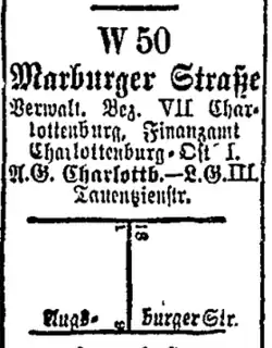 - ↑ a b Marburger Straße. In: Straßennamenlexikon des Luisenstädtischen Bildungsvereins (beim Kaupert)