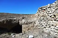 Durch die Grundmauern des Stadttores gelangt man in das Innere des Mauerrings. Das Stadttor wurde von zwei Querbastionen verengt, sodass die Perser einen verwinkelten Eingang zu überwinden hatten. Ein Stollen beginnt unter der Stadtmauer.