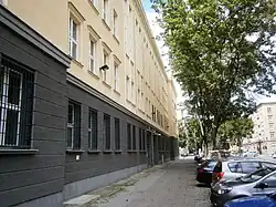 An der Marchlewskistraße (damals: Memeler Straße 24/25) wurde zu Beginn des 20. Jahrhunderts eine Gemeinde-Doppel-Schule (87., 98. und 257. Gemeindeschule, danach Handelsschule und 256. Volksschule) zusammen mit dem Wohnhaus für den Rektor („Lehrerwohnhaus“) nach Entwürfen von Hermann Blankenstein und Bernhard Mylius[60] erbaut. Die 87. und 98. Geindeschule zog 1908 in den Neubau Bromberger Straße (→ Datheschule) um, die 256. Gemeindeschule (kathol., Knaben- und Mädchen).[61] aus dem Mietshaus 68 zog hierher.[62] Das Schulgebäude auf Marchlewskistraße 44 (Zugang über 47) wurde kriegszerstört und existiert nicht mehr. Das erhaltene Rektorenwohnhaus (Nummer 45) ist ein dreigeschossiger mit gelben und roten Klinkern verblendeter fünfachsiger Mauerwerksbau. Die Fassade wird durch Zierfriese, rote Querstreifen und Gesimse aufgelockert und besitzt mittig ein leicht vorgebautes Portal.[63][64] Es wird nach Umbauten als Wohnhaus genutzt.[65] Das Grundstück der Schule wurde von der Gubener Straße her mit 13–13d bebaut.