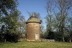 Der Taubenturm steht am Ende der Lindenallee rund zwei Kilometer nordöstlich des Herrenhauses. 1749 führte der Steinmetz James Williamson die Arbeiten aus. Das Mauerwerk des Rundturms besteht aus Bruchstein vom Sandstein, der grob behauen zu einem Schichtenmauerwerk verbaut wurde. Öffnungen sind mit Natursteindetails abgesetzt. Die schlichte Eingangstüre befindet sich an der Südwestseite. Darüber ist ein Rahmen mit fehlender Platte eingelassen. Der Turm schließt mit einer schiefergedeckten Kuppel mit aufsitzender Laterne. In diese sind Einfluglöcher eingelassen. Im Inneren sind 532 hölzerne Nistkästen gereiht.[2]