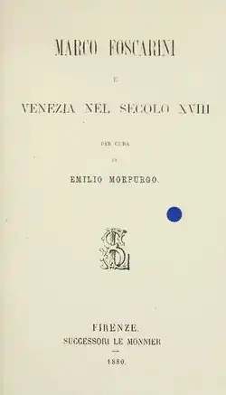 - Emilio Morpurgo: Marco Foscarini e Venezia nel secolo XVIII, Le Monnier, Florenz 1880. (Digitalisat)