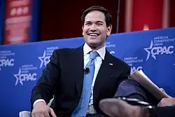 - ↑ Ashley Parker, Alan Rappeport: Marco Rubio Announces 2016 Presidential Bid. In: The New York Times, 13. April 2015 (englisch); Konrad Kramar: Marco Rubio: Jung, charmant und ziemlich wendig. In: Kurier.at, 15. April 2015.