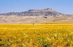 Eines der agrarisch wichtigsten Gebiete sind umliegende Ebenen wie die von Kızıltepe, die 4–5 km südlich von Mardin beginnt. Diese ebenen Flächen bieten rotbraune Böden, die unter Steppenvegetation gebildet wurden, wo semiaride kontinentale Klimabedingungen wirksam sind. Das wichtigste Merkmal dieser steppenartigen Böden ist ihre alkalische Reaktion und die Anreicherung von überschüssigen Basen und Kalk in der Unterbodenschicht, wodurch sie für den Getreideanbau geeignet sind.[50] Diese Steppen liegen in Gebieten des Fruchtbaren Halbmonds, die oftmals als Zentrum für genetische Vielfalt im Nahen Osten beschrieben werden. Wilde Vorfahren vieler Pflanzen, die heute weltweit kultiviert werden, haben sich in diesen Gebieten auf natürliche Weise verbreitet. Avena- (Hafer), Hordeum- (Gerste) und Triticum- (Weizen) Arten sind einige davon. Obwohl mehr als 400 Pflanzenarten in der Steppenflora dort vorkommen, ist dieses Gebiet in Bezug auf Endemismus eine der ärmsten Gegenden der Türkei. Die meisten sind Arten der iranisch-turanischen Florenregion, und die Einschleppungsrate von Pflanzen aus der mediterranen Florenregion ist sehr gering. Auf der anderen Seite fallen einige Pflanzenarten in Bezug auf ihre Artenvielfalt auf. So sind etwa 10 verschiedene Gattungen wie Tragant (Astragalus, Bockdorn), Wolfsmilchgewächse (Euphorbia) und Klee (Trifolium) in diesem Gebiet weit verbreitet.[51]