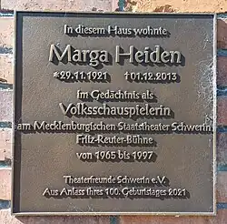 - ↑ a b Marga Heiden. ( vom 29. Oktober 2014 im Internet Archive) Kurzbiografie beim Hinstorff Verlag, Version vom 29. Oktober 2014 im Internet Archive abgerufen am 20. August 2015.