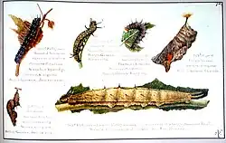 - 862 original water-colour drawings of Lepidoptera larvae and pupae with their food plants, 1907–1939.