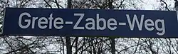 Der Grete-Zabe-Weg auf dem Gelände der früheren Staatskrankenanstalt Friedrichsberg in Hamburg-Barmbek-Süd erinnert an sie.