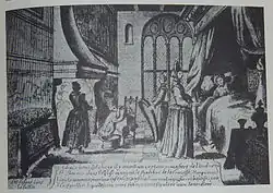 Auch außerhalb der Kirche wurde nun eine Darstellung der Geschehnisse gezeigt: Im Gasthaus Het wapen van de Prins van Oranje war ein Bild von Petrus Kaerius zu sehen, das das Kindbett der Margarete von Henneberg zeigte. Dieses Gemälde wurde im 17. Jahrhundert auch in Drucken verbreitet und befindet sich heute in der Abteikirche von Loosduinen. Es zeigt an der linken Wand eine Art Kommode, auf der eine Schüssel mit den vielen Kindern steht, dahinter einen rauchenden offenen Kamin, vor dem Geburtshelferinnen mit heißem Wasser und Leintüchern beschäftigt sind, und rechts das Bett der Kindbetterin.