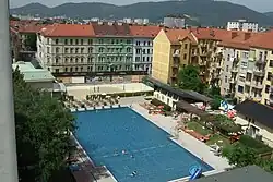 Ganzjähriges Restaurant mit Freibad-Terrasse. 25-Meter-Becken mit Nichtschwimmerbereich, Kinderrutsche „Cobri“, Kinderareal mit Kinderplanschbecken, 2 Beachvolleyballplätze inkl. Sandspielbereich, Tischtennis.[12]