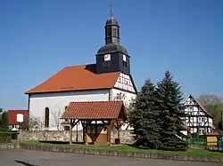 Die Saalkirche wurde 1718 als Gutskirche der Hansteiner gebaut. Aufgrund der Reparaturbedürftigkeit der Kirche, vor allem an Dach, Turm und Fenstern, fand ein letzter Gottesdienst im Herbst 1976 statt. Die beiden Kirchenglocken von 1355 und 1422 wurden aus dem einsturzgefährdeten Turm genommen und im Pfarrgarten in einen freistehenden Glockenstuhl gehängt. Zur Vervollständigung des Geläutes wurde noch eine dritte Glocke gegossen. Seit 1986 wurde eine Sanierung durch die Denkmalpflege der DDR durchgeführt. Die Kirche stand zunächst leer, bevor sie im Jahre 1992 wieder eingeweiht wurde.