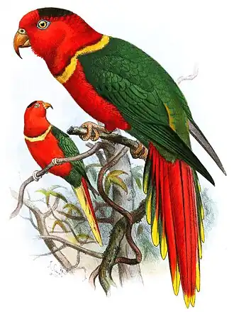 Zeichnung zweier Margarethenloris durch John Gerrard Keulemans | ||||||||||||