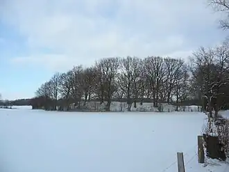 ![]() Burgwall von der Seeseite mit Eichenbestand | ||