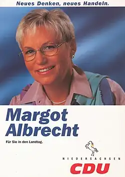 - ↑ CDU Stadtverband Königslutter am Elm: Zur Person Margot Albrecht, abgerufen am 9. Januar 2010.