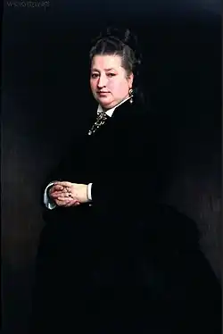 ein Ölbild von 1875, betitelt Portrait de Madame Boucicaut von William-Adolphe Bouguereau (ausgestellt im Salon von 1876, Nr. 241 ; Weltausstellung von 1878, Nr. 98; Ausstellung von Porträts des Jahrhunderts in der École des beaux-arts 1883) ;