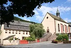 Der Schlussstein der Decke im Chorbereich zeigt wahrscheinlich das Wappen des Abtes und Zehntherrn von St. Maximin, Willibrord Schefter. Die Kirche mit dreiseitigem Chorabschluss ist 17 m lang und 8,85 m breit. Ihr Westportal mit Gesims und Giebelabschluss enthält eine Nische für die Holzfigur des hl. Johann von Nepomuk (wegen Witterungsschäden heute im Pfarrhaus). Die Kirche hat je drei rundbogig geschlossene Fenster auf Nord- und Südseite. Der schlichte Bruchsteinbau ist außen einfach verputzt in einem blassen Gelbton. Auf dem Dach thront ein Dachreiter. Im Turminneren befinden sich zwei Kirchenglocken, beide gegossen von der Glockengießerei Mabilon in Saarburg. Sie sind dem hl. Nikolaus und der hl. Maria geweiht. Da früher der Friedhof um die Kirche lag (Kirchhof), befinden sich noch viele alte Grabsteine an der Kirchenmauer. Direkt neben dem Eingang stehen drei ganz besondere Grabsteine.