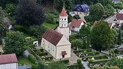 Diverse Malereien schmückten die Wände, doch sind diese durch mehrere Umbauten zum Teil überdeckt oder verloren. Die Umbauten lassen sich auf das 12/13. Jahrhundert und um die Jahre 1560 und 1601 datieren. Nach dem Dreißigjährigen Krieg wurde die Kirche mit Barockaltären neu ausgestattet. 1947 und bei der Renovierung 1976–1982 wurden diese jedoch wieder entfernt.