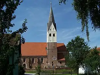 Die spätgotische Staffelhalle aus Backsteinen wurde in der zweiten Hälfte des 15. Jahrhunderts errichtet. Ihr Mittelschiff zu vier Jochen und der eingezogene, dreiseitig geschlossene Chor zu zwei Jochen im Osten sind die ältesten Bauteile. Das südliche, von Strebepfeilern gestützte Seitenschiff wurde unmittelbar anschließend erbaut. Der Kirchturm, in dem drei Glocken hängen, steht in der Südostecke von Seitenschiff und Chor. Die Sakristei befindet sich an der Südwand des Chors. 1883/84 wurden das nördliche Seitenschiff angefügt und der Kirchturm mit einem spitzen Helm bedeckt.