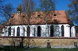 Das Kloster wurde vermutlich um 1240 gegründet. Aus dieser Zeit stammt wohl auch der Kirchenbau, der 1259 seine erste Erwähnung findet. Die Steinmetzzeichen am Chor werden auf Mitte 13. Jahrhundert datiert. Von 1326 sind dann die ersten Messstiftungen in dieser Kirche bekannt. 1289, 1449, 1525 und 1546 wurde das Kloster und die Kirche durch Angriffe und Brandschatzungen schwer beschädigt. 1550/51 kam es dann zu umfangreichen Auf- und Neubauten. Der Dachstuhl und die Fensterleibungen wurden zu dieser Zeit erneuert. 1554 wurde in die Kirche eine Kassettendecke eingezogen. Mitte des 18. Jahrhunderts kam es zur Barockisierung der Kirche, bei der wahrscheinlich auch die Sakristei am Chorscheitel angebaut wurde. Der Hochaltar und die Seitenaltäre wurden um 1760 erstellt. Nachdem 1803 das Kloster im Zuge der Säkularisation aufgelöst worden war, wurde 1808 das Kloster zum Zuchthaus umfunktioniert. 1825 kam es dann zu den größten baulichen Veränderungen in der Geschichte dieser Kirche bis heute. Unter der Empore wurden 8 Bänke des Laiengestühls abgebaut und dieser Teil von der Kirche abgetrennt und als Wachstube eingerichtet. Außerdem wurde über der Empore eine neue Decke abgehängt, worüber ein Gefangenenspeisesaal und darüber ein Lagerraum errichtet wurde. Dazu wurde eine neue Empore errichtet und die Kanzel versetzt. 1839 wurde die gesamte Westfassade abgebrochen und neu errichtet. 1860 wurde wegen des Einbaus einer neuen Orgel die Orgelempore vergrößert, weshalb auch die Kanzel abermals versetzt wurde. 1909 wurde die 1825 eingezogene Zwischendecke wieder ausgebaut und die Kassettendecke repariert, die 1956 mit dem Muster von 1554 jedoch mit billigem Sperrholz saniert wurde.