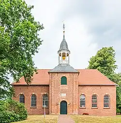 Die evangelisch-lutherische Maria-Magdalena-Kirche in Hatshausen, Gemeinde Moormerland (Ostfriesland), wurde 1783 als symmetrische Saalkirche axial auf der Grenze zu Ayenwolde erbaut.