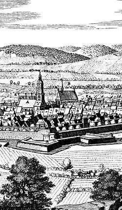 Nach einigen Jahren erwarben die Nonnen ein Grundstück in der Neustadt Einbecks, um in der dortigen Kirche Gottesdienst halten zu können. Bischof Peter von Mainz genehmigte 1318 die Mitnutzung der Kirche und auch der Stadtrat Einbecks stimmte nach anfänglichem Widerstand zu.[1] 1322 wurde der Bau des Klosters fertiggestellt. Im gleichen Jahr stiftete die Familie von Benhusen, aus der späteren Wüstung Bensen am Südrand der Einbecker Landwehr, dem Kloster die Hälfte ihrer Mühle an der Ilme.