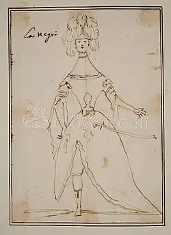 Eine Karikatur von Anton Maria Zanetti zeigt eine als „La Negri“ bezeichnete Opernsängerin in einem Amazonenkostüm (Fondazione Cini, Venedig; Abb. oben). Laut Sechi handelt es sich dabei wahrscheinlich um Maria Caterina Negri und nicht um die Sopranistin Antonia Negri Tomii gen. „La Mestrina“ (aktiv 1728 bis 1742 in Venedig), wie dies teilweise von anderen Autoren vermutet wurde. Für Maria Caterina spricht die Tatsache, dass sie 1727–28 in Venedig unter anderem kriegerische Frauenfiguren wie Bradamante (in Vivaldis Orlando) und Selinda verkörperte, während Antonia Negri Tomii (laut Sechi) nur in weiblichen Rollen von pathetischem Charakter auftrat.[1]