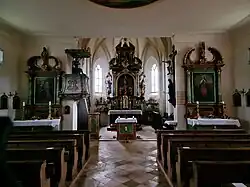 Die Inneneinrichtung verfügt über einen Hochaltar aus dem späten 17. Jahrhundert mit spätgotischer Muttergottes um 1500.