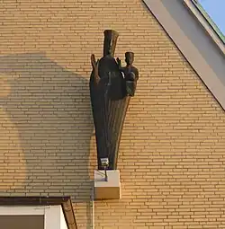 Sie hat die Form eines Hauszeltes mit steilem, tief heruntergezogenem Satteldach, das mit zwölf schrägen Betonpfeilern wie mit Zeltleinen im Boden verankert ist. Die Wände des Stahlbetonbaus sind mit ockerfarbenen Klinkern verblendet. Das Kreuz an der Spitze des Nordgiebels wurde erst 1996 angebracht. Über dem Eingangsportal befindet sich eine große Figur der gekrönten Muttergottes mit Kind, die 1963 nach einem Entwurf von Erentrud Trost entstand.