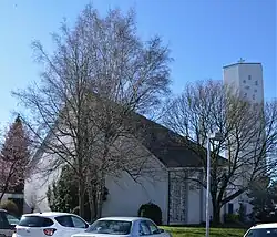 Die polygone Kirche mit dem 31 Meter hohen Campanile wurde 1959/60 von Philipp Olkus erbaut. Sie wurde für 500 Gottesdienstbesucher konzipiert. Die Sitzplätze verteilen sich auf drei Blöcke, der Boden weist ein Gefälle zum Chorraum hin auf. Nachdem 1974 Reparaturarbeiten notwendig wurden, nahm der Bildhauer Alfred Appenzeller eine Neugestaltung des Innenraumes vor. Die Oesterle-Orgel auf der Empore stammt von 1982. 1998 kam ein neues Beleuchtungskonzept hinzu.