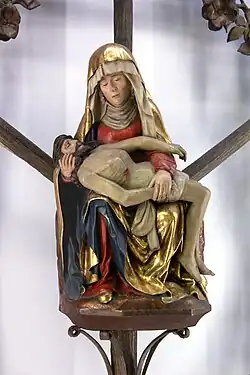Das Gnadenbild von Maria Martental, eine aus Holz geschnitzte, 78 cm hohe Pietà, ist das Werk eines unbekannten Künstlers aus der Zeit Ende des 15. Jahrhunderts. 1910 musste die Skulptur nach einem Kerzenbrand restauriert werden, wobei wahrscheinlich eine Hand ersetzt wurde. 1935 fasste der Kölner Bildhauer Paul Rautzenberg die Figur in Gold und Silber und schloss den offenen Rückenteil. Viele Jahre war das Gnadenbild auf einem drehbaren Sockel angebracht, damit es sowohl zum Innern der Kirche hin als auch nach außen gezeigt werden konnte, wenn ein Wallfahrtsgottesdienst im Freien stattfand. Seit 1973/74, als das Kirchengebäude nach Osten erweitert wurde, hing die Pietà, inzwischen wieder farbig gefasst, im neu entstandenen Chorbogen frei über dem Messaltar, umgeben von einem Kranz aus stilisierten Rosen mit Reliefs, die die Geheimnisse des Schmerzhaften Rosenkranzes darstellen. Bei der Renovierung der Kirche im Jahr 2004 wurde sie aus Sicherheitsgründen hinter Glas gestellt.[2][3]