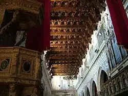 Die Kirche besteht aus drei Schiffen. Das Innere ist geprägt durch die Holzkassettendecke. Die Schiffe werden getrennt durch dicke Säulen aus schwarzem Basalt. Es gibt Gemälde von Guglielmo Borremans zu sehen. Die linke Apsis zeigt ein Kreuzrippengewölbe, wie es ursprünglich bestand, die rechte ist mit Malereien und Stuckarbeiten aus dem 18. Jahrhundert geschmückt.