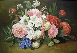 Sie schuf Blumenstillleben und Genreszenen, meist im Aquarell.