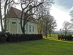 Die heutige Kapelle aus verputztem Mauerwerk wurde um 1701/03 anstelle einer Holzkirche von 1655 erbaut. Sie besteht aus einem Langhaus und einem leicht eingezogenen, korbbogig geschlossenen Chor im Osten, die außen und innen mit Pilastern gegliedert sind. Über der Fassade im Westen erhebt sich ein Dachreiter, der den Glockenstuhl beherbergt und der mit einer Zwiebelhaube bedeckt ist. Er wurde 1954/55 erneuert.
