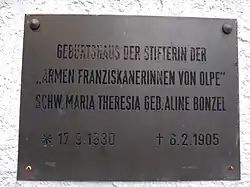 - ↑ Pressestelle des Erzbistums Paderborn: Biografie von Mutter Maria Theresia Bonzel OSF für die Feier der Seligsprechung (abgerufen am 28. Juni 2014)